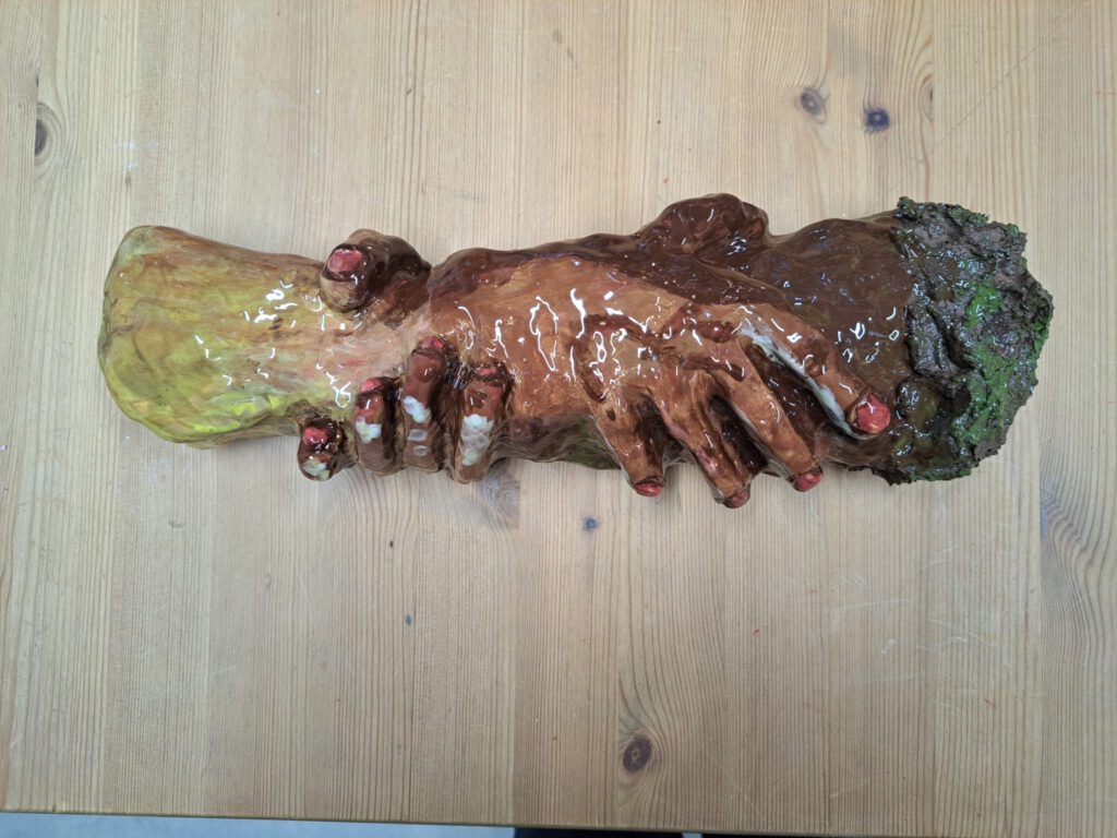 Kleien heeft raakvlakken met traumaverwerking. Het begint met het plastic verwijderen rond de klei. Bloot stellen. Kwetsbaar opstellen.